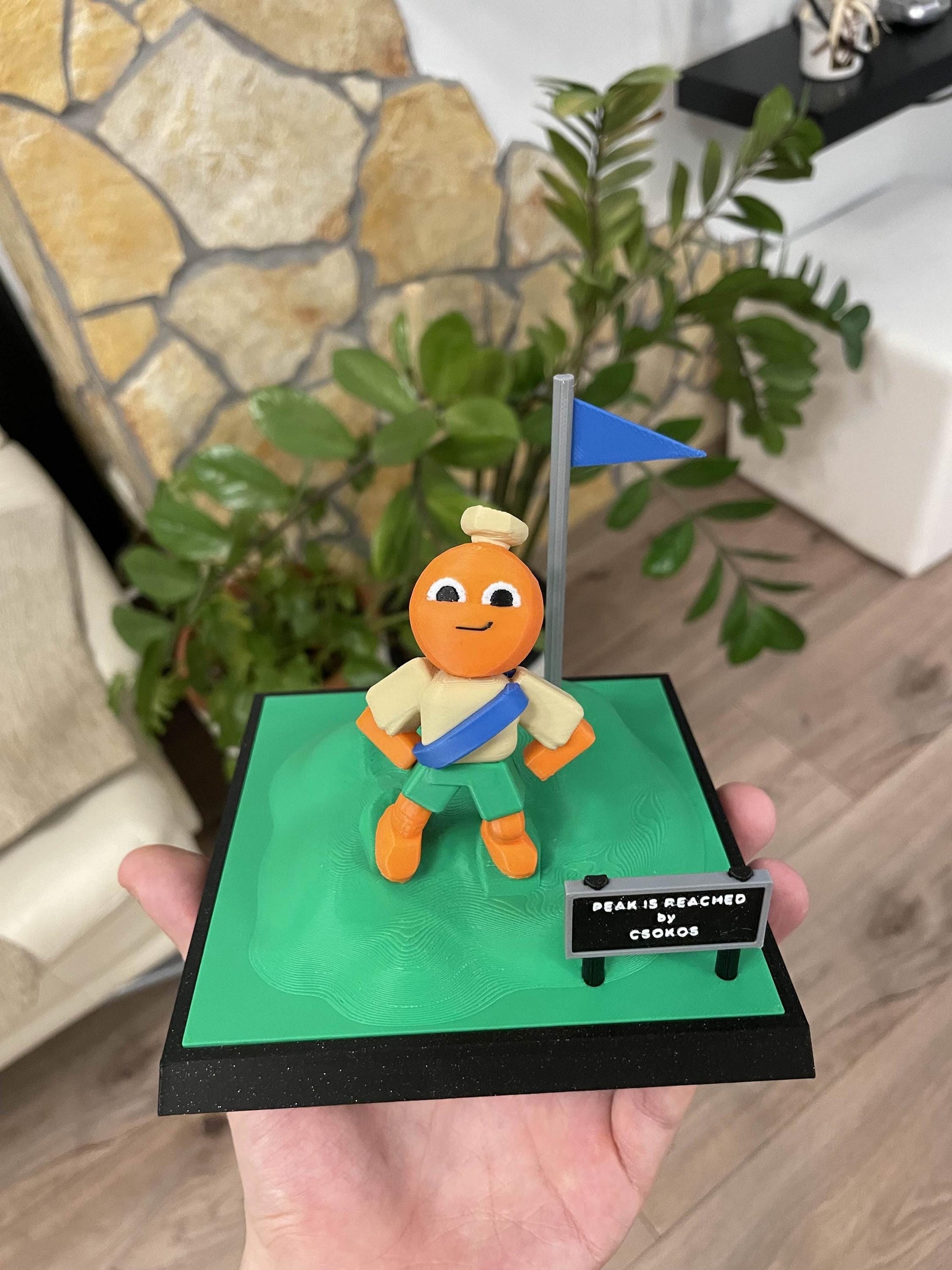 Bring a playful touch to your space or surprise someone with a one-of-a-kind gift! This charming figure is inspired by the Peak Game aesthetic, proudly standing at the summit with a confident pose and a flag to mark the achievement.